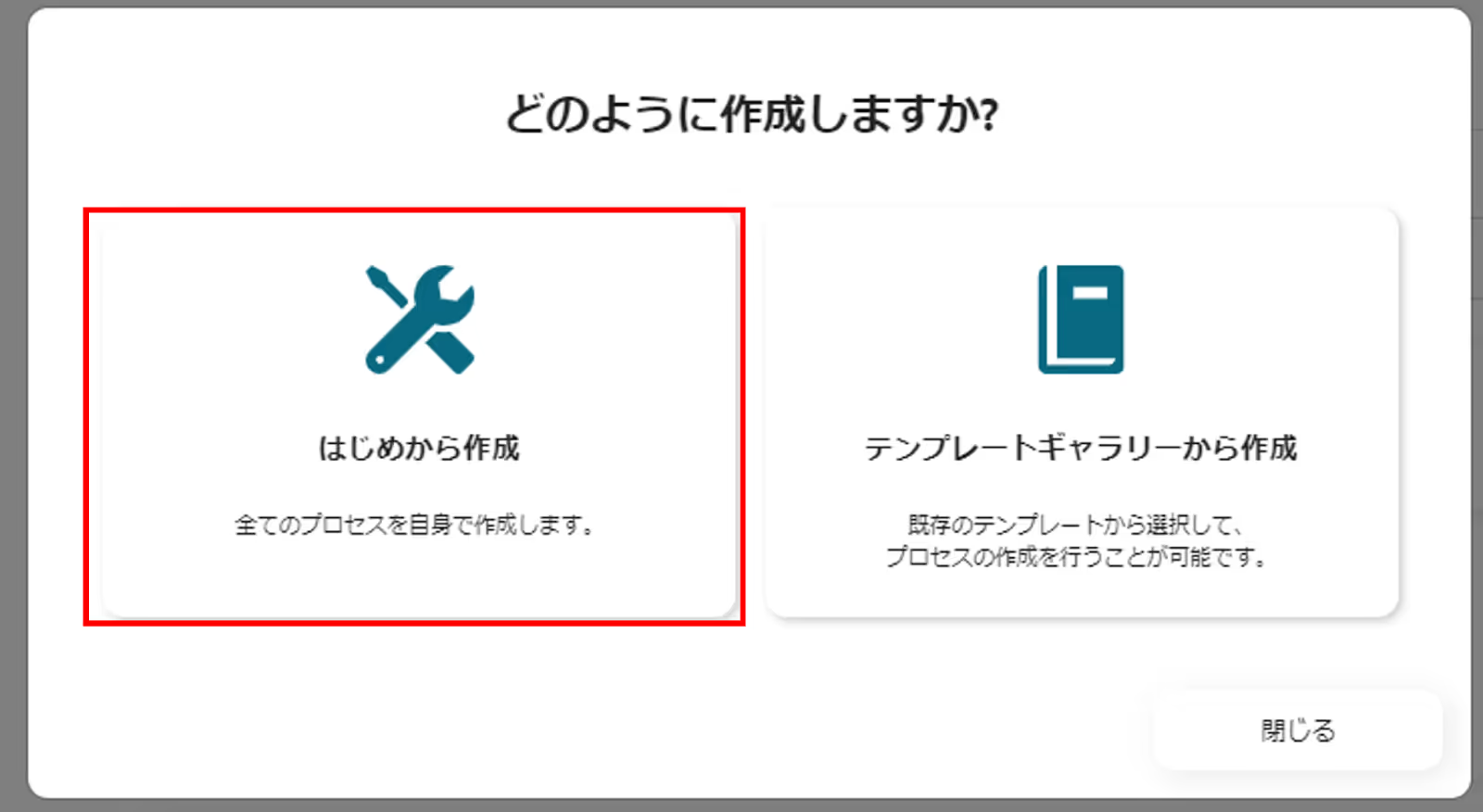 1.プロジェクト一覧からテンプレートを作成するプロジェクトを任意で選択してください。 2.画面右側に+新規接続ボタンが表示されるので、クリックします。 3.はじめから作成を選択してください。