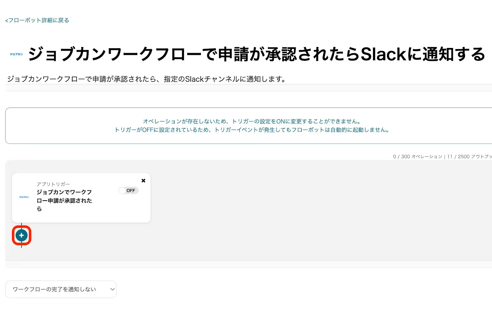 ジョブカン経費精算・ワークフローとのトリガー設定およびSlackのアクション設定