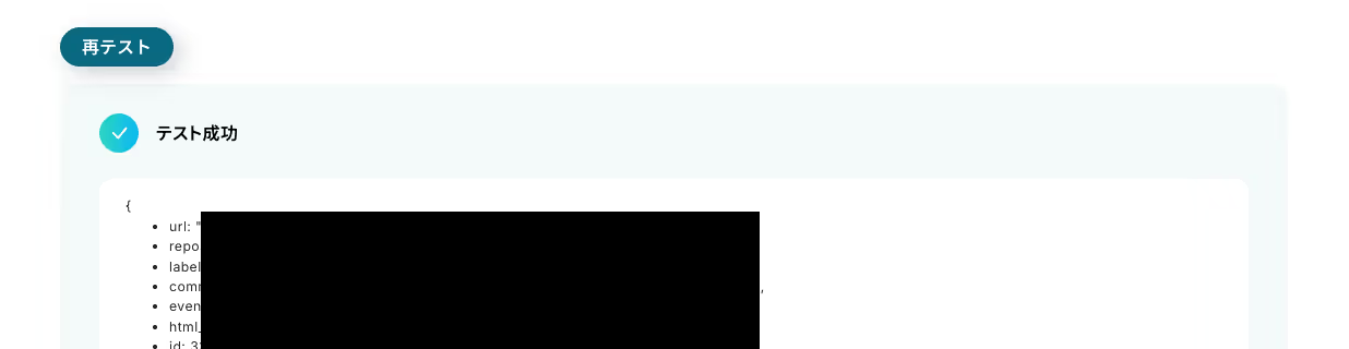 12.テストが成功すると以下のように表示されて、情報を取得できます。(以下はテスト成功の一例です。)