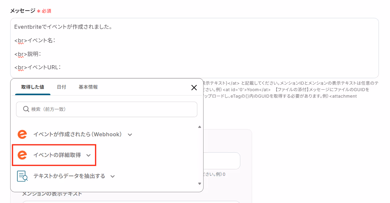 イベントIDはトリガーアクションで取得した「API URL」の末尾に記載されているため、AI機能によってIDだけを抽出していきましょう。