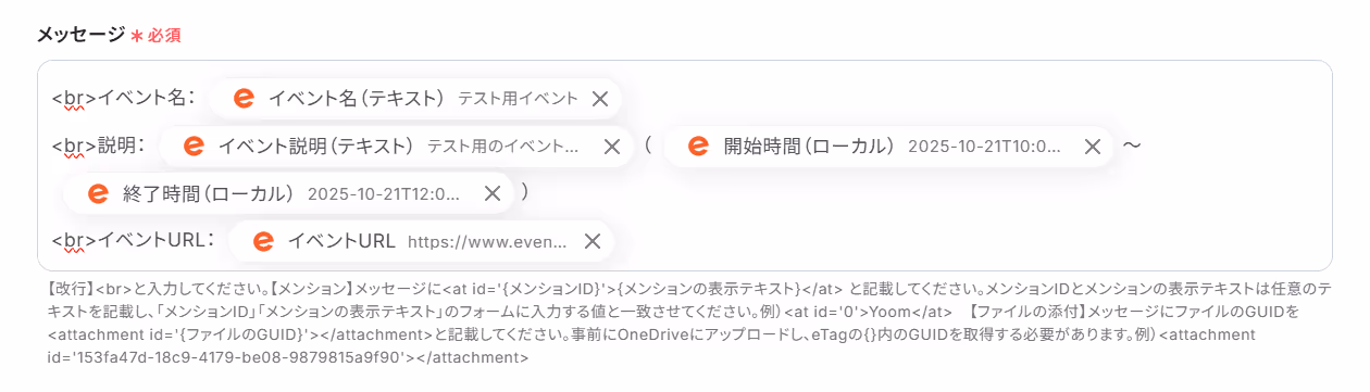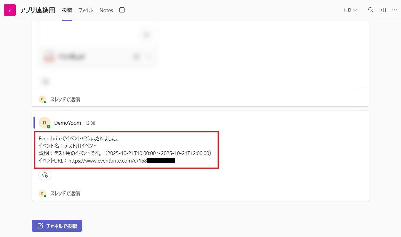 それでは、イベントの作成を通知するメッセージをMicrosoft Teamsに投稿しましょう。