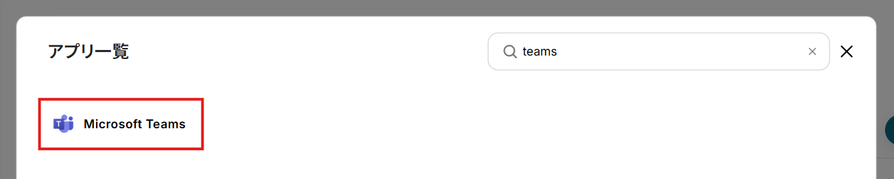 アプリ一覧画面でMicrosoft Teamsを検索して選択。