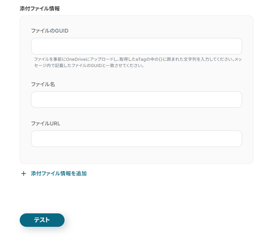その他、「メンション情報」や「添付ファイル情報」も設定可能です。 フローの運用方法に応じて設定してください。