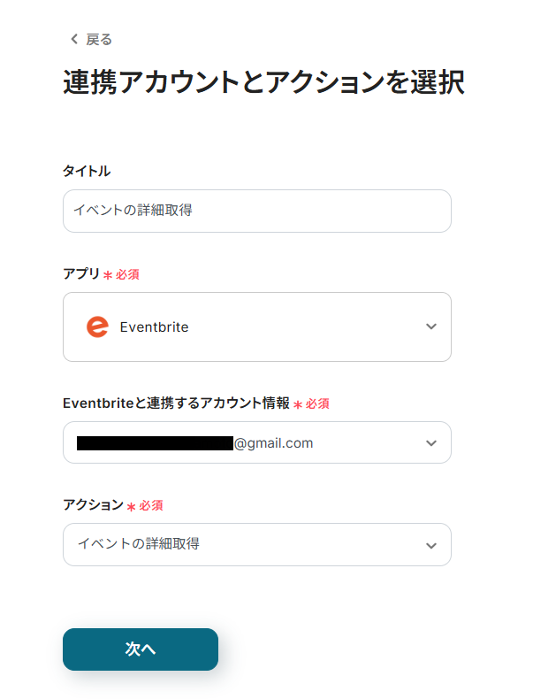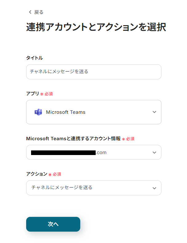 連携アカウントとアクションを確認して、「次へ」をクリック。