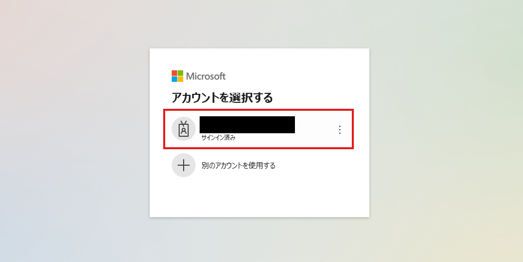 ※ 既にサインインしているアカウントがある場合、以下のような画面が表示されます。