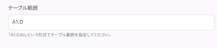 そのため、テーブル範囲は「A1:D」のように入力することになります。それぞれ作成したシートに適した範囲を入力してください。