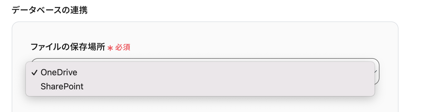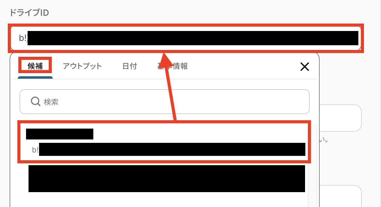 「ドライブID」は、候補から選択すると簡単に入力することができます。 入力欄をクリックすると、候補が表示されます。