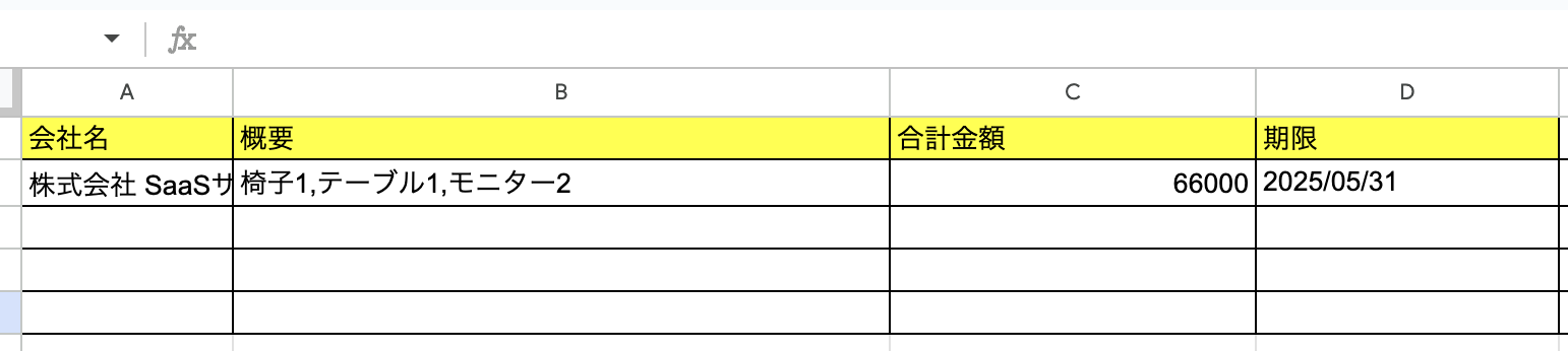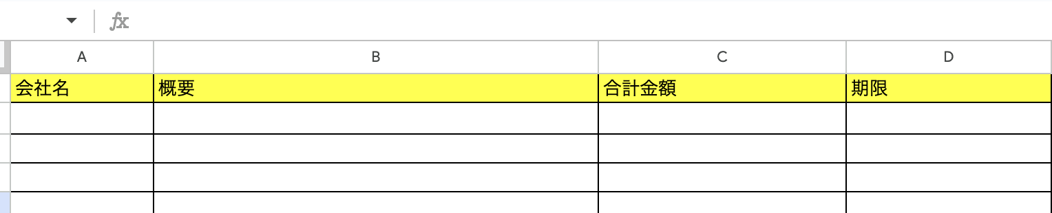 今回は以下のような、読み取り結果の情報を集約するシートを事前に作成しています。