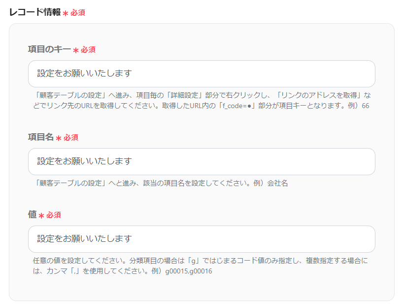 各ボックスの下部に詳細が記載されているので、手順に沿って入力しましょう。