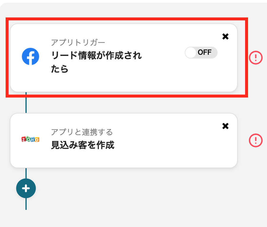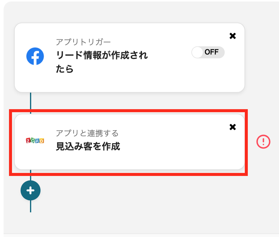 アプリ名でFacebook広告とZoho CRMをそれぞれ検索し、必要な情報を入力します。