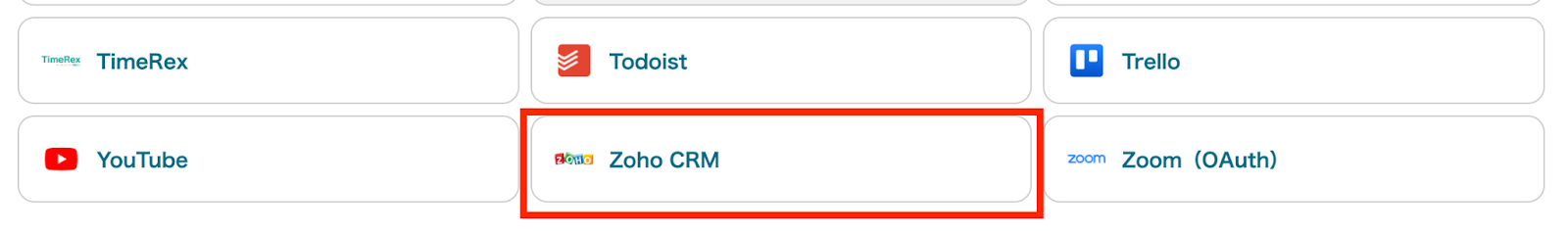Zohoドメインは、ご利用のZohoのドメインを「.com」「.com.au」「.eu」「.in」「.com.cn」「.jp」の中からいずれかを設定してください。