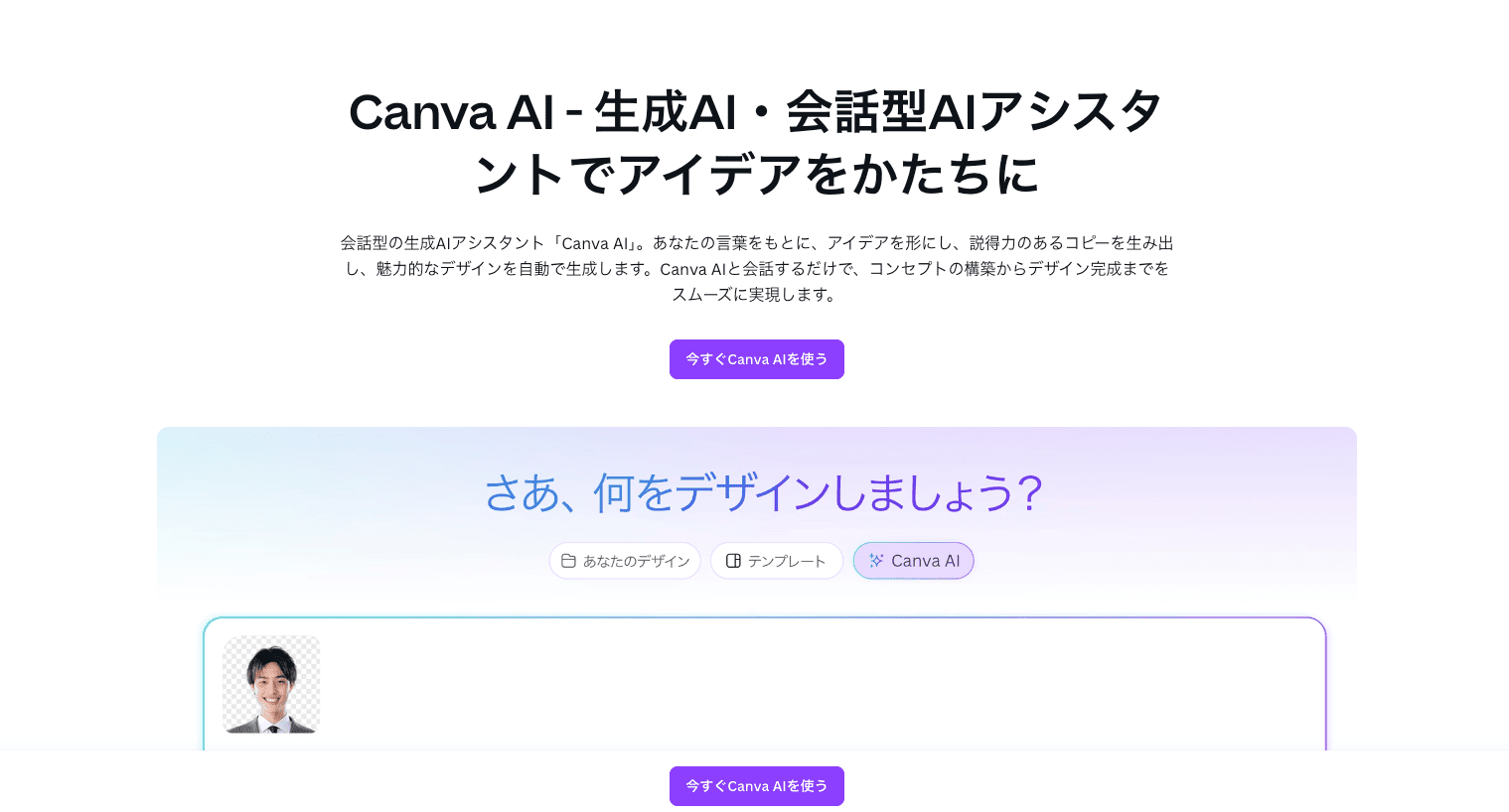 デザインツール内での手軽さが強みであり、AI生成をデザインの一工程としてシームレスに行えるのが最大の強みです。専門知識がなくても、数クリックでデザインに溶け込む画像を生成・挿入できるため、日常的なビジュアルコンテンツ作成の効率を向上させます。無料プランでも一定回数利用できます。