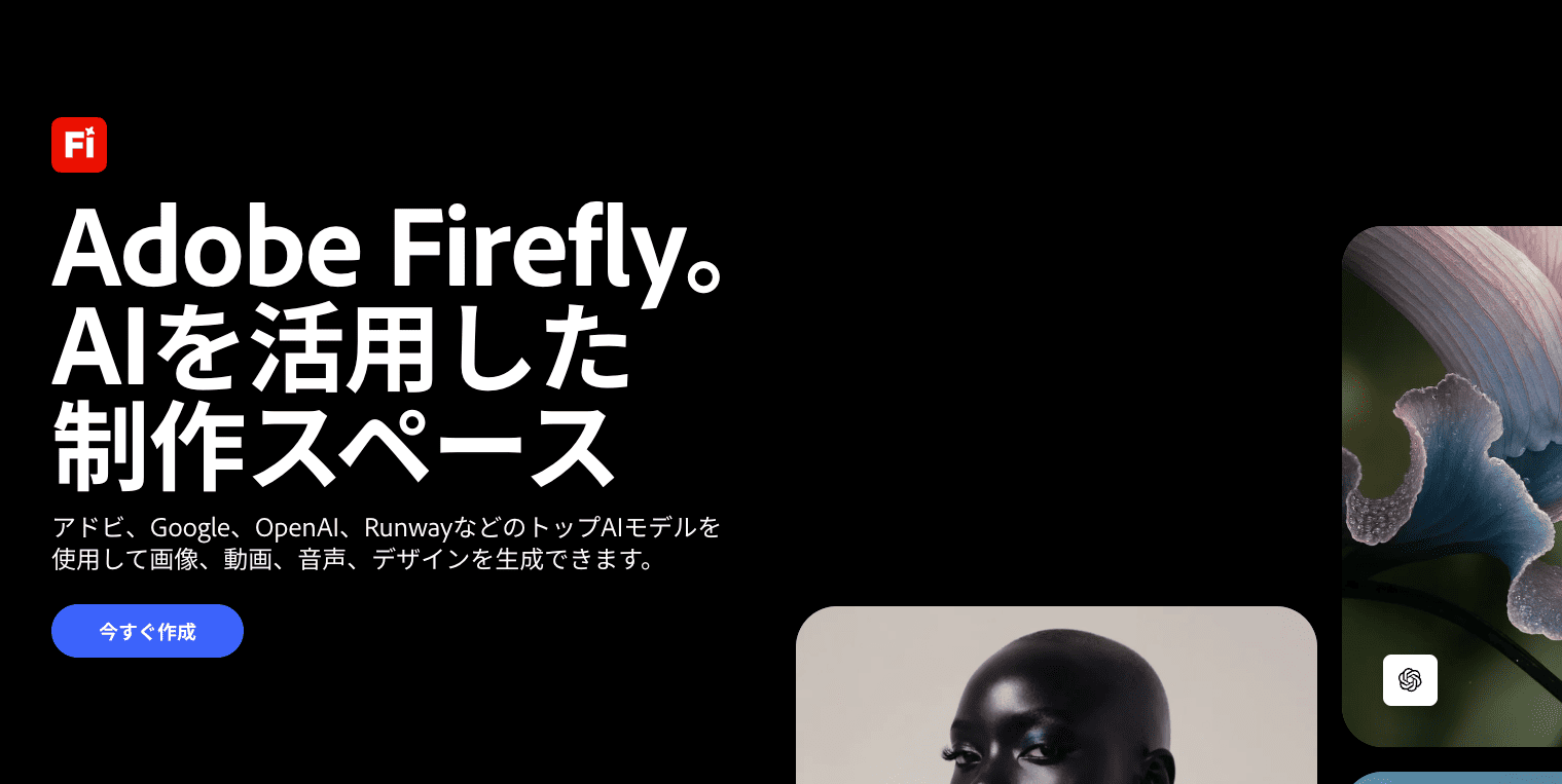 商用利用の安心感が重視されており、特にデザイナーやビジネスユーザーにとって大きな強みとなります。生成した画像をPhotoshopなどの編集ツールでシームレスに加工できるため、既存の作業環境を変えずにAI機能を活用したい場合に最適で、無料クレジット制で試すことが可能です。