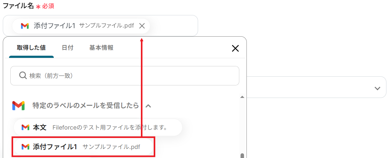 Gmailで受信した添付ファイルをFileforceにアップロードする