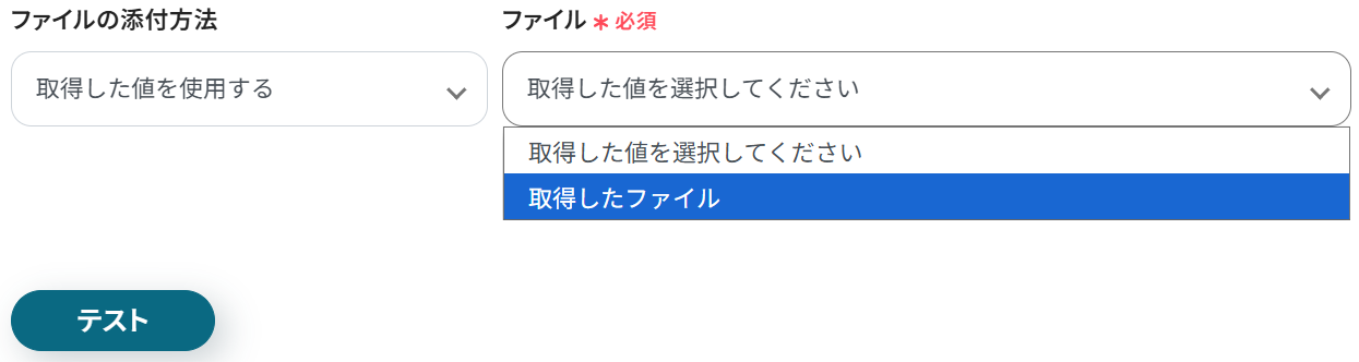3.ステップ5の「ファイル」を「取得したファイル」に変更