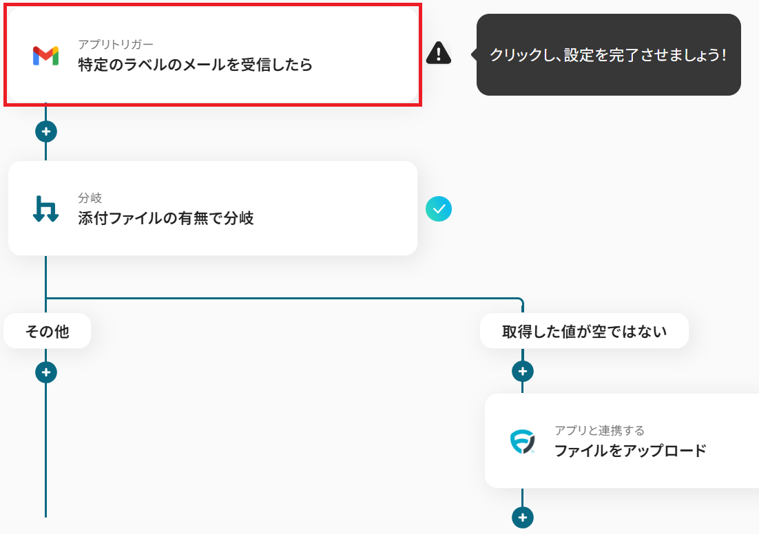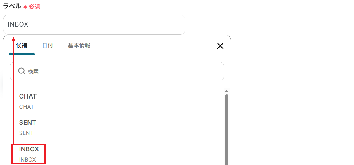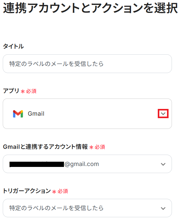 - Gmailのトリガー設定では、自動化の対象としたいメールに付与するラベルを指定してください。