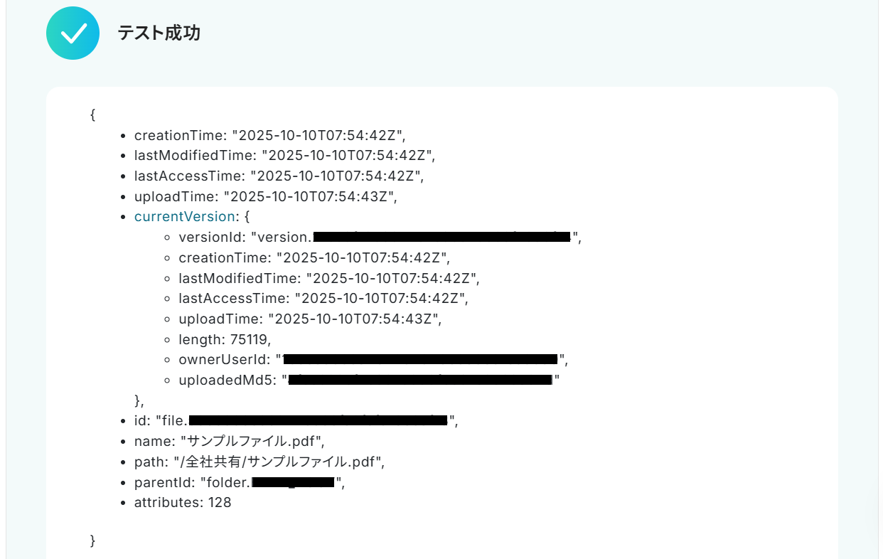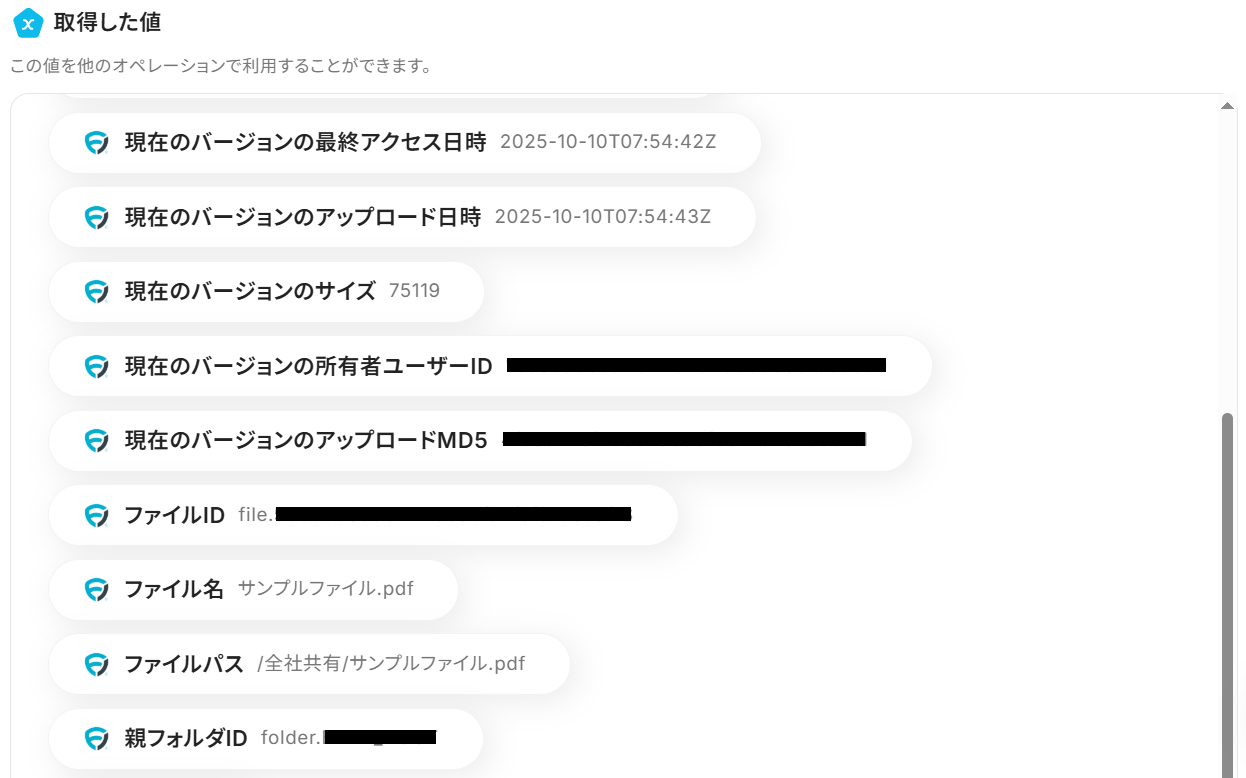 Fileforce APIのアイテム取得機能をフローに組み込むことで、指定フォルダ内のファイルやフォルダの一覧を定期的に取得し、その情報をSlackなどのチャットツールに自動で通知できます。