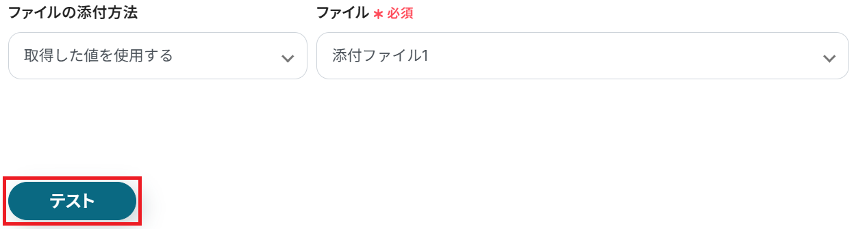 - 最後に、LINE WORKSの各アクションを設定し、ダウンロードしたファイルをアップロードした上で、指定のトークルームに送信します。