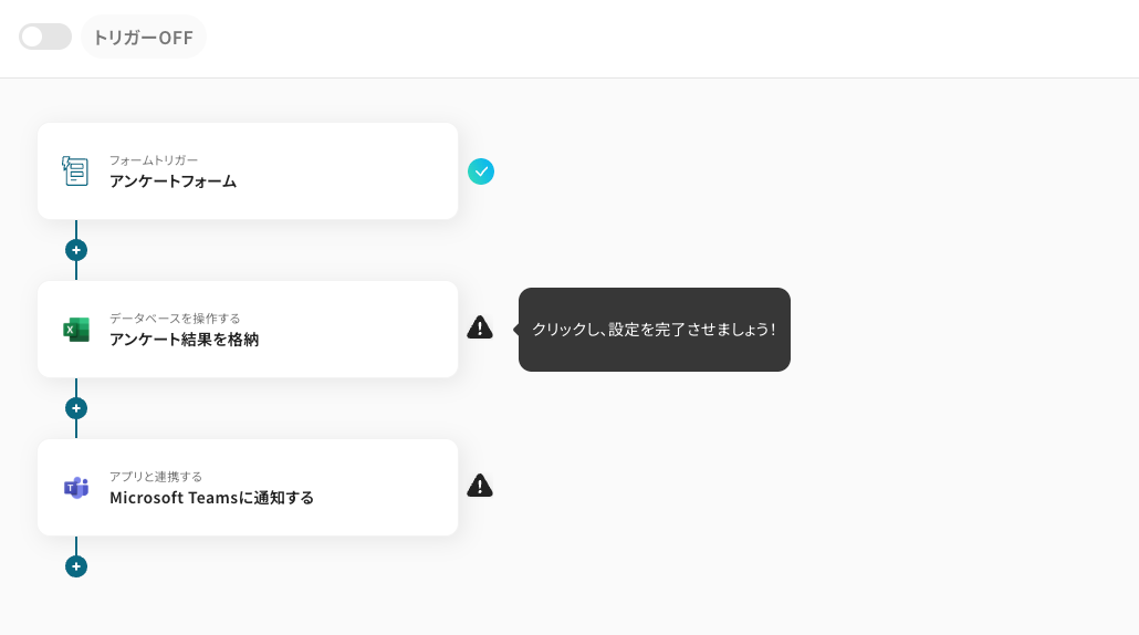 それではここから代表的な例として、「アンケートフォームに回答があったら、Microsoft Excelに回答内容を追加しMicrosoft Teamsに通知する」フローを解説していきます!