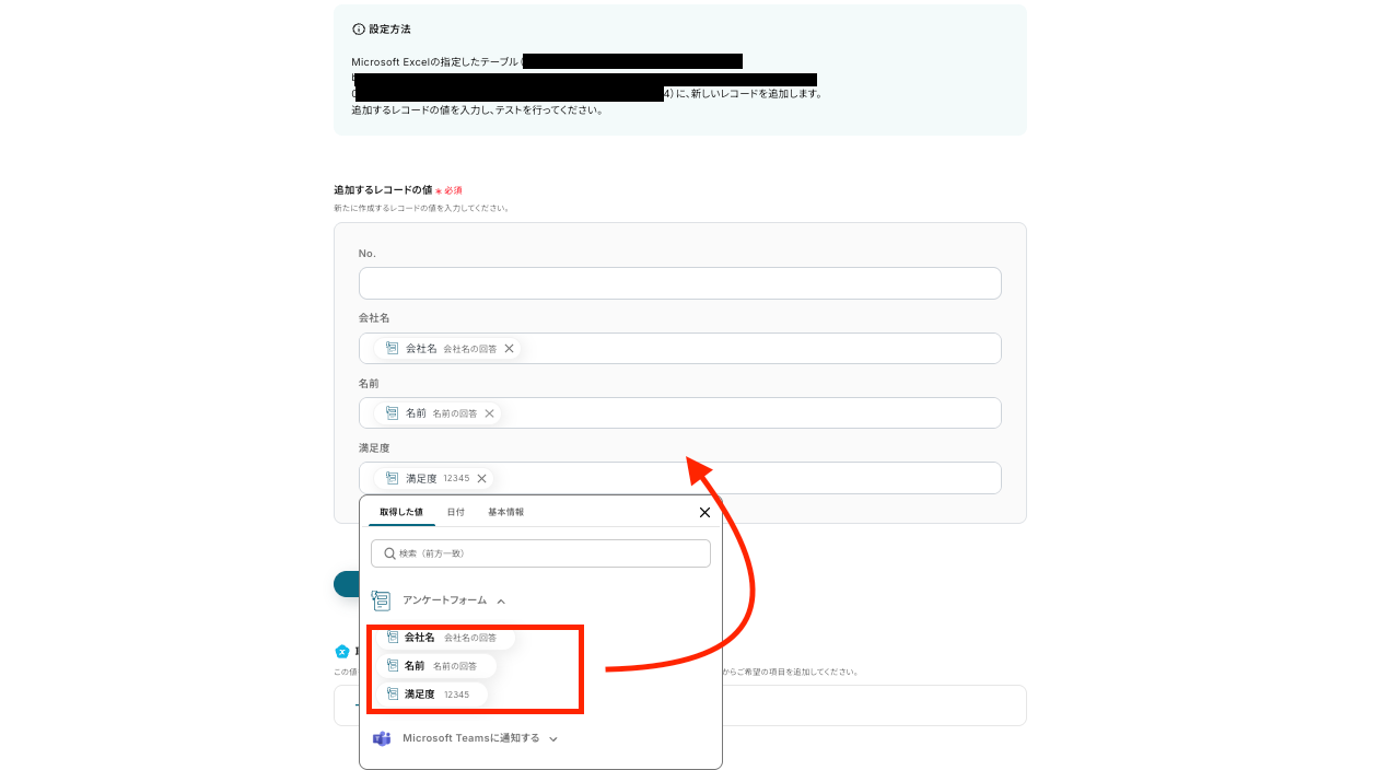 アンケートフォームに回答があったら、Microsoft Excelに回答内容を追加しMicrosoft Teamsに通知する