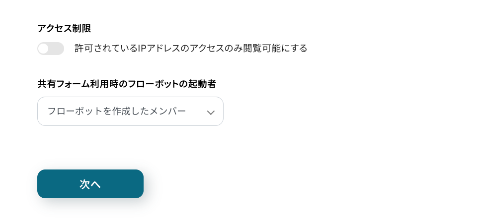 アクセス制限も運用状況に合わせて設定可能です。 設定後、[次へ]をクリックしましょう。