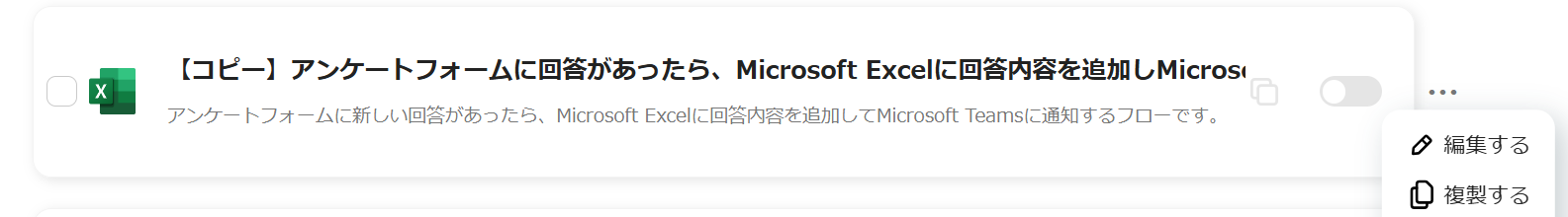 トリガーボタンをONにして、Microsoft ExcelとMicrosoft Teamsの連携フローの動作確認をする。
