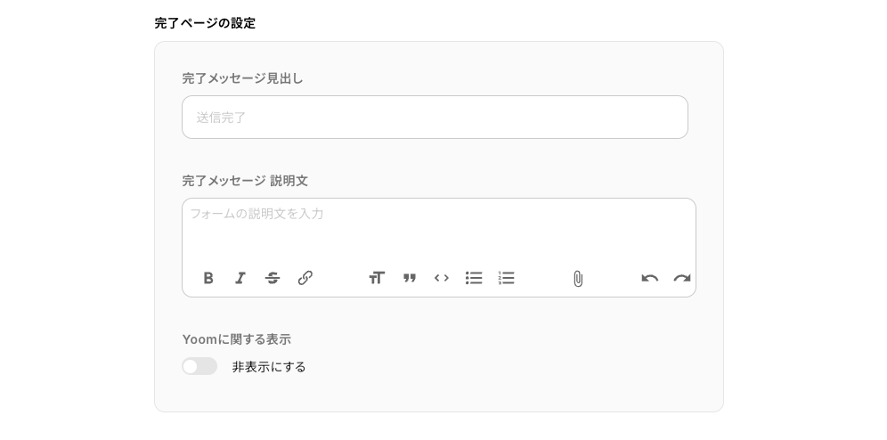 設定ページ下部で、完了ページの表示をカスタムできます。
