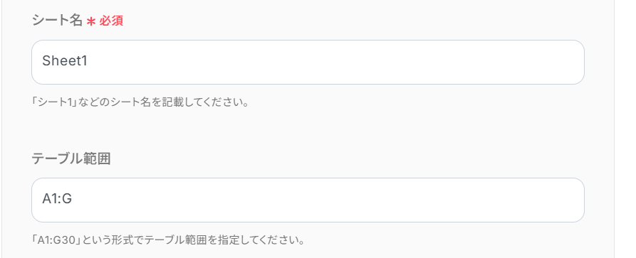 (ヘッダーの設定をお願いします。テーブル範囲については、こちらのページ を参照してください。)