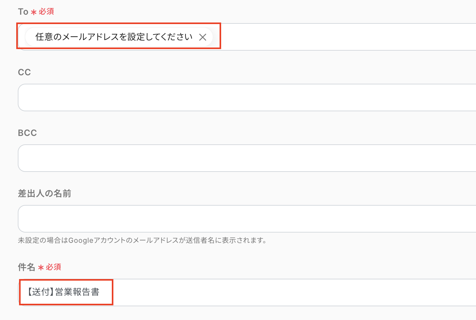 今回の場合は以下のようなフォームを作成し、送信しました。