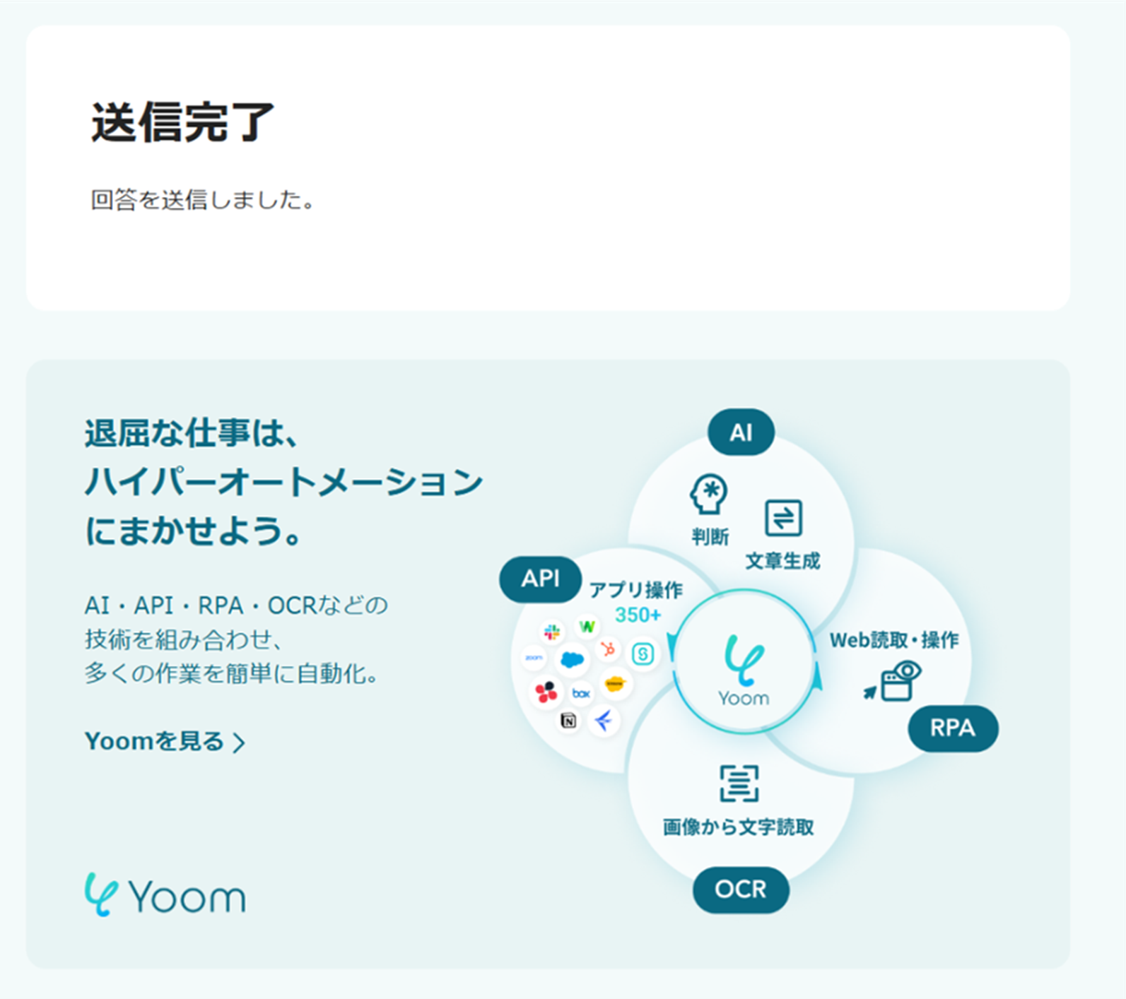 Yoomではプログラミング不要でアプリ間の連携ができるため、簡単にこのフローを実現することができます。