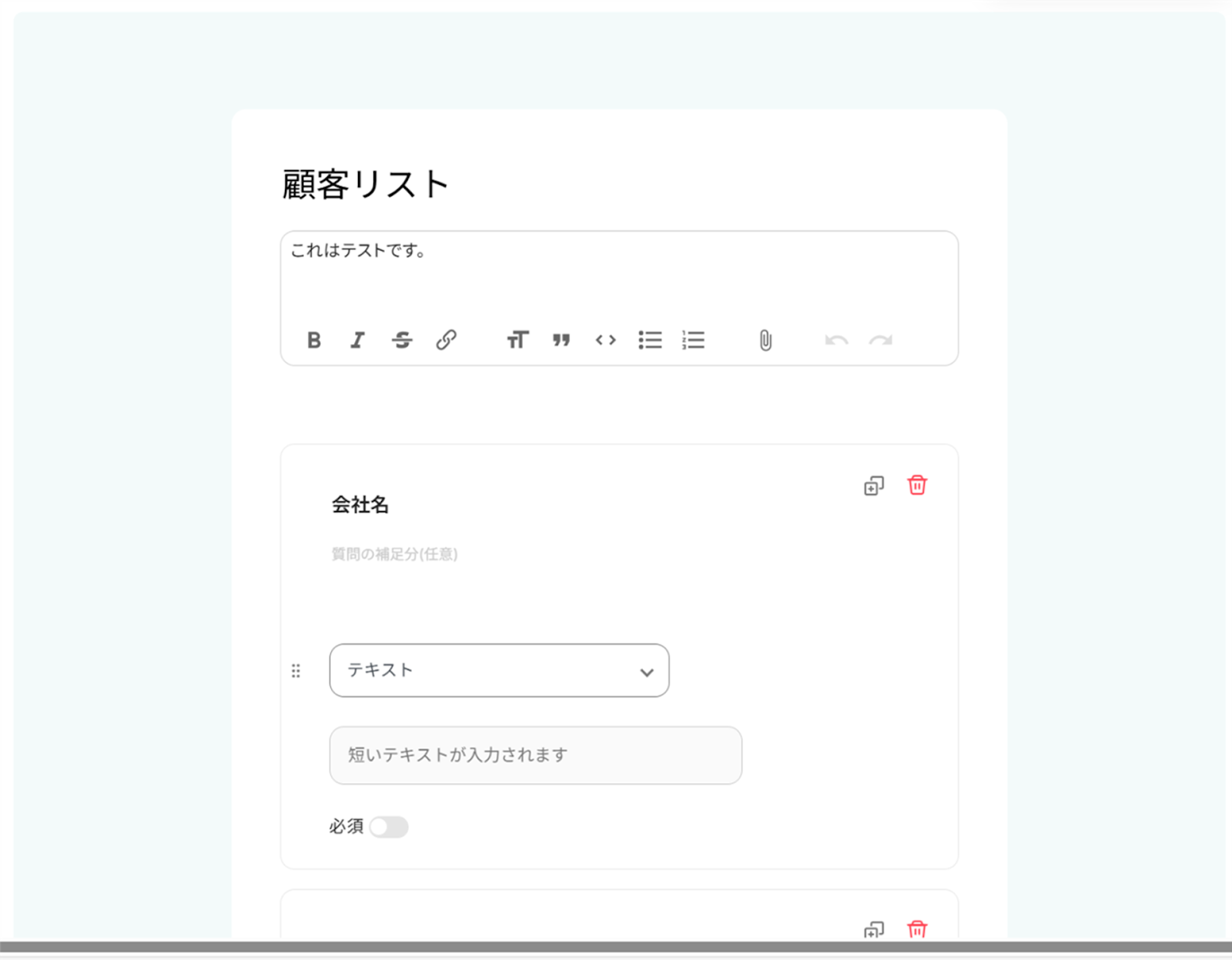 (2)「フォーム作成」画面から、質問内容と回答方法をプルダウンから選択します。