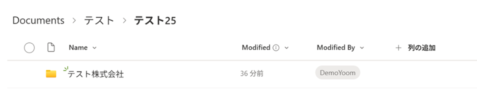 テストに成功すると、Microsoft SharePointにフォルダが作成されていました! Yoomに戻り、「保存する」をクリックしましょう。