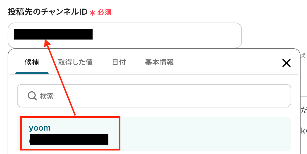 トリガー設定で指定したチャンネルIDを候補から選択してください。