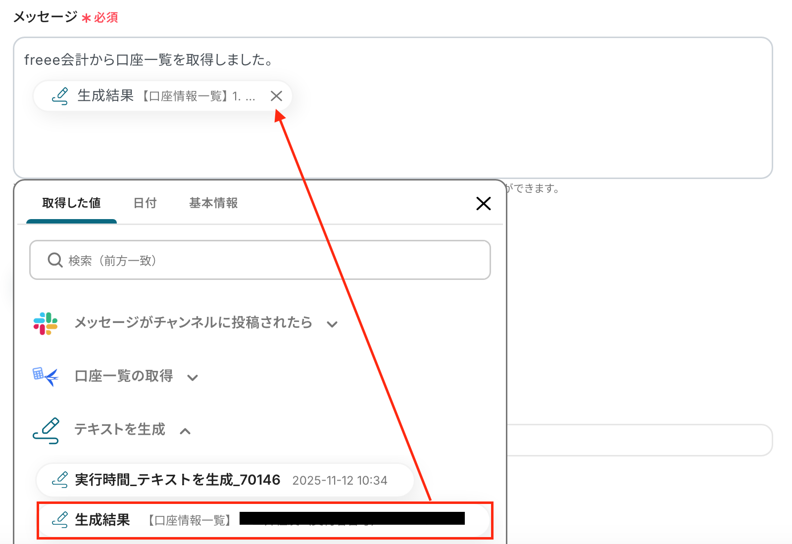 「テキスト生成設定」で取得した値を活用して入力しましょう!
