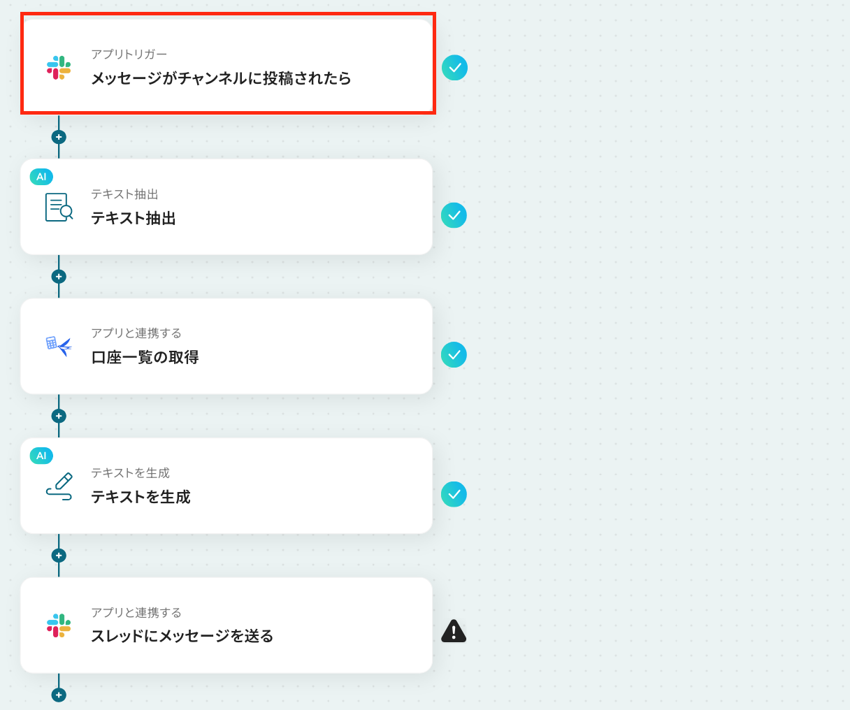 これから「Slackの投稿内容をもとにfreee会計の口座一覧を通知する」フローを設定していきます!