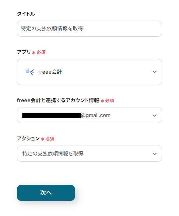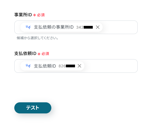「支払依頼ID」にはデフォルトで、ステップ3で取得した支払依頼のIDが設定されています。