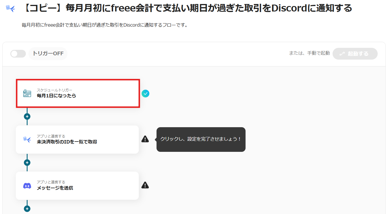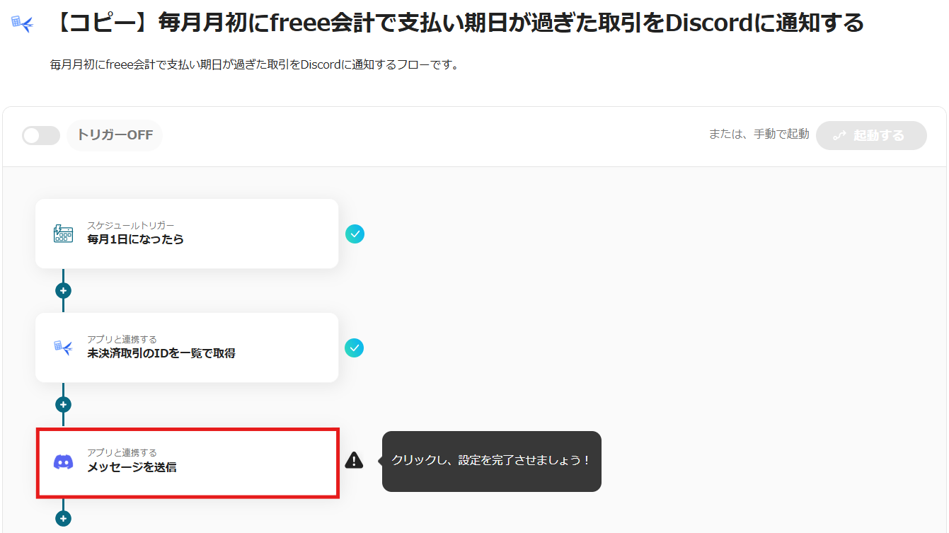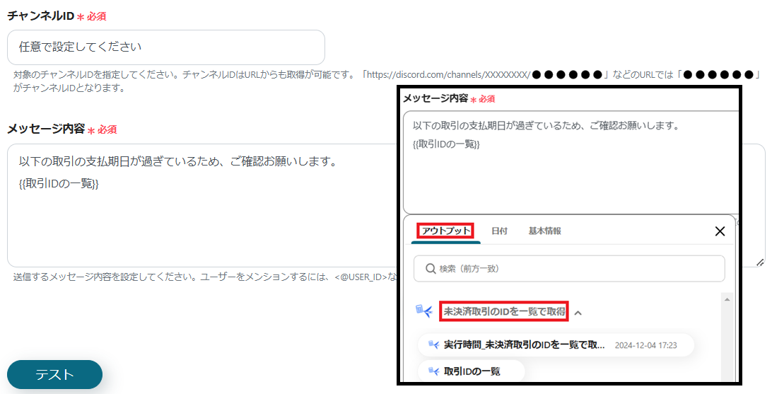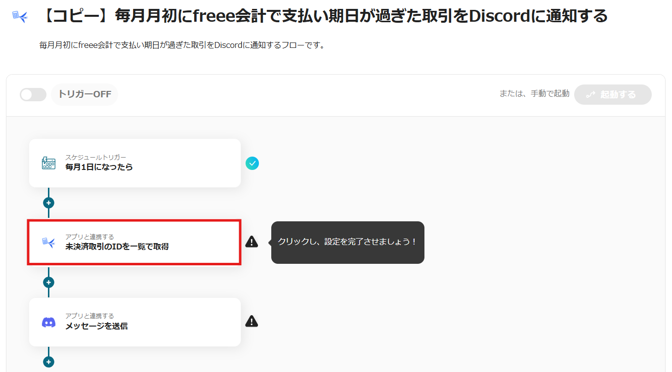最後に、freee会計から取得した未決済取引のIDをDiscordに通知する設定をします。