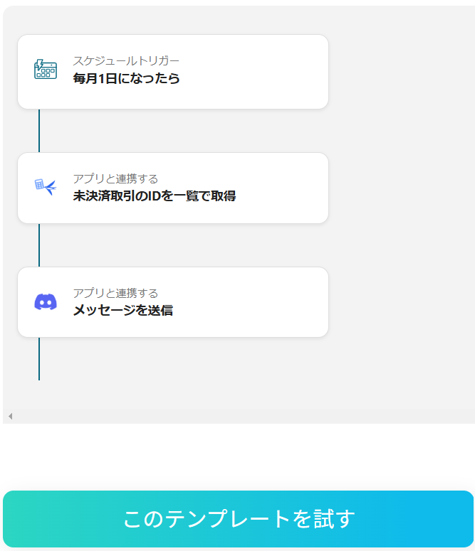 これから、プログラミング不要でアプリ連携が可能なYoomで、「毎月月初にfreee会計で支払い期日が過ぎた取引をDiscordに通知する」というフローボットの作成方法を紹介します。