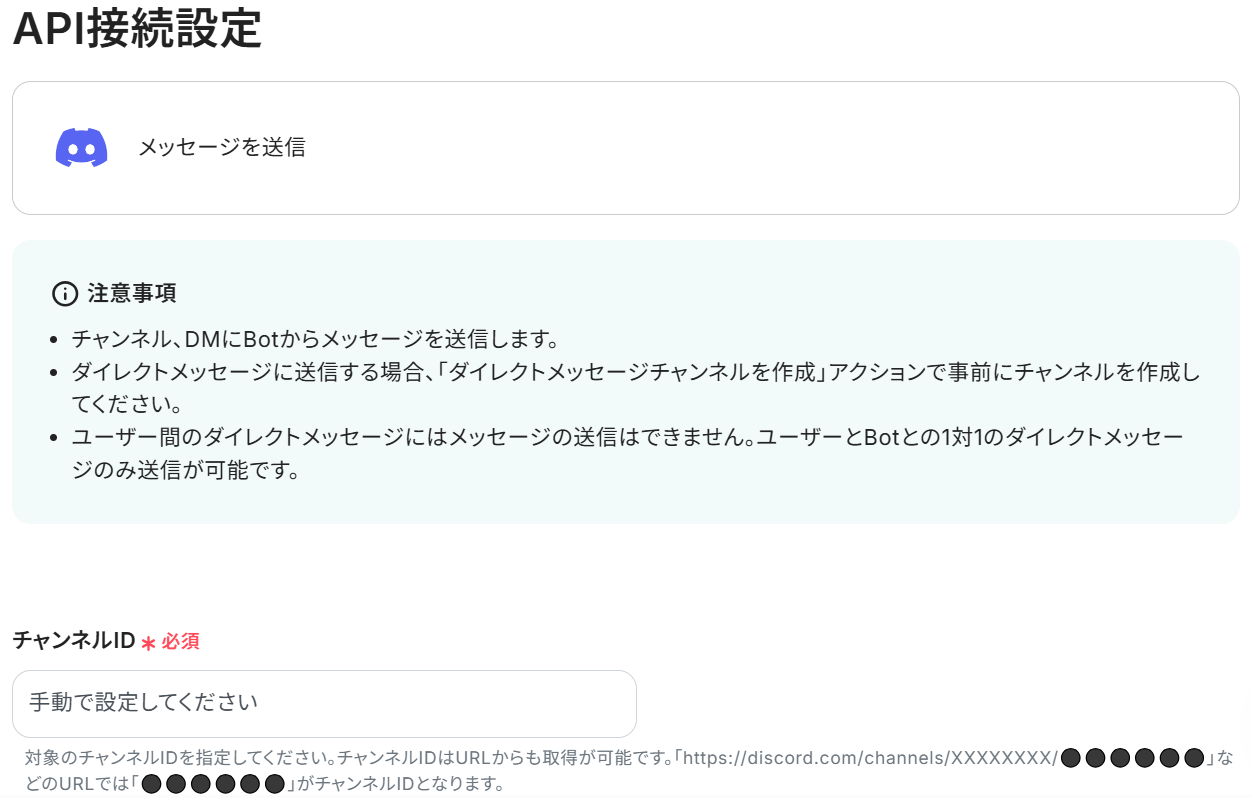 ※アクセストークンにはDiscord Developer Portalから取得したBotトークンを設定してください。詳細な設定方法はこちら。