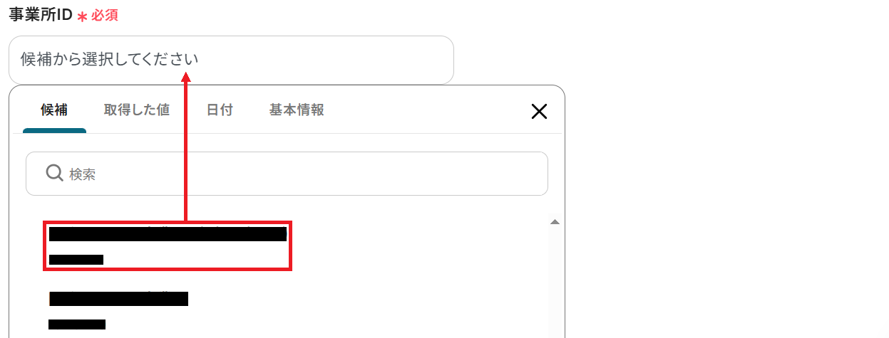 API接続設定に移るので、まず事業所IDを候補から選択します。
