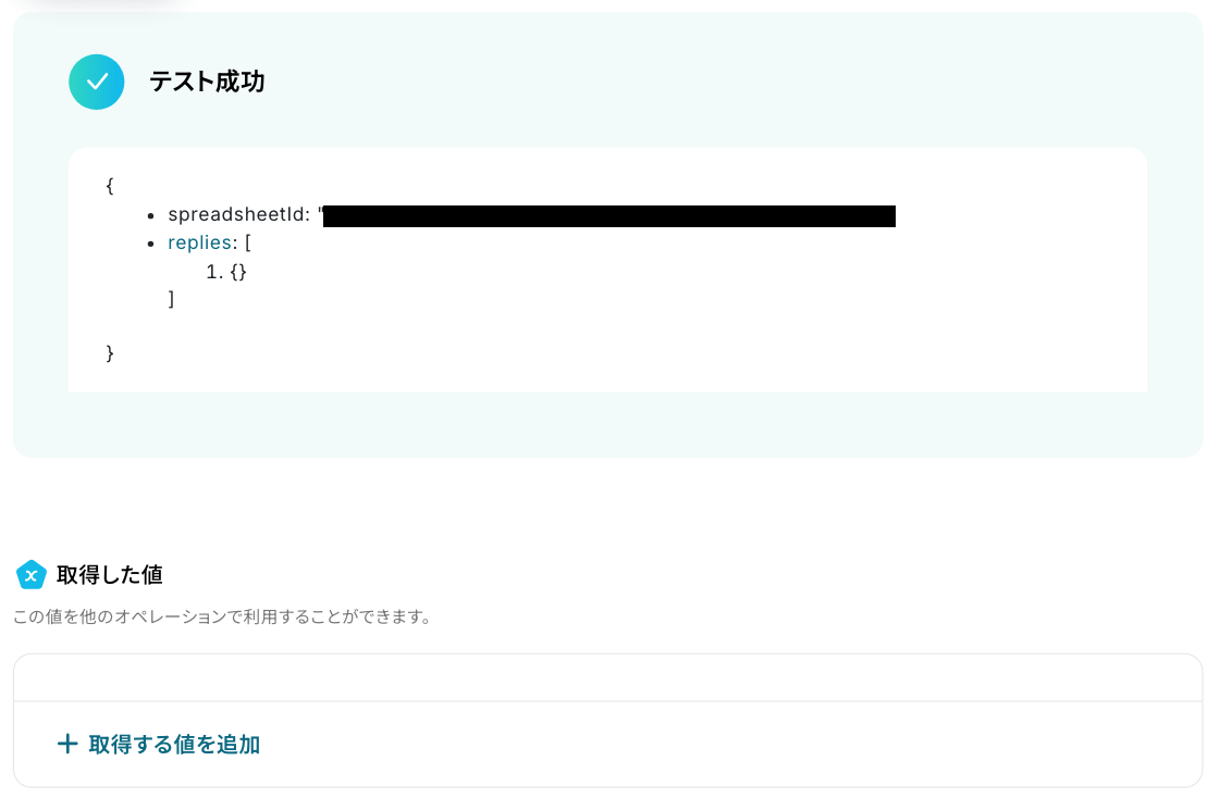テストに成功すると、取得した値が表示されます。