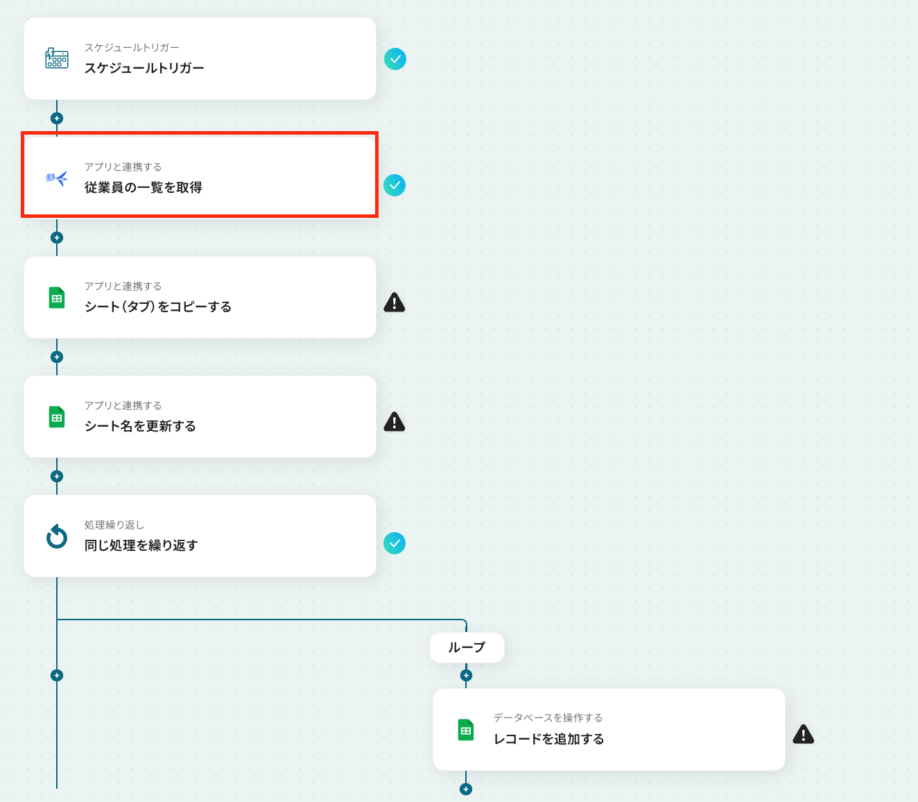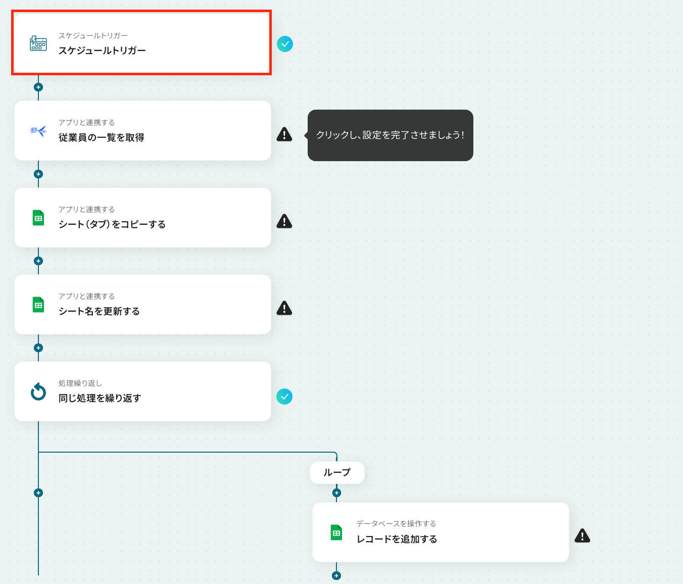 ここから「定期的にfreee人事労務から従業員の一覧を取得し、Google スプレッドシートの新しいシートに追加する」フローの設定をしていきます!
