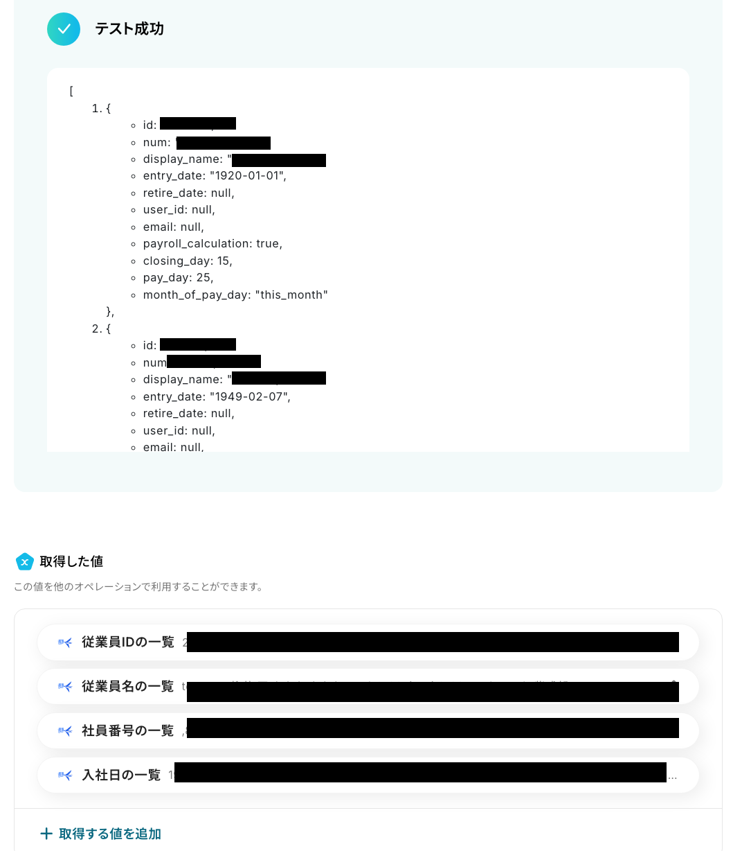 ここでは、freee人事労務で従業員の一覧を取得する設定を行います。