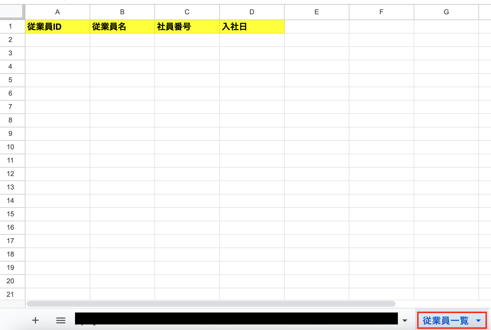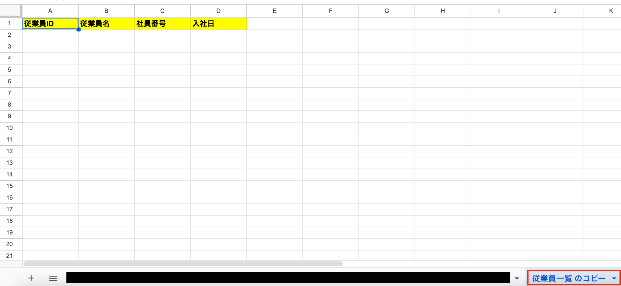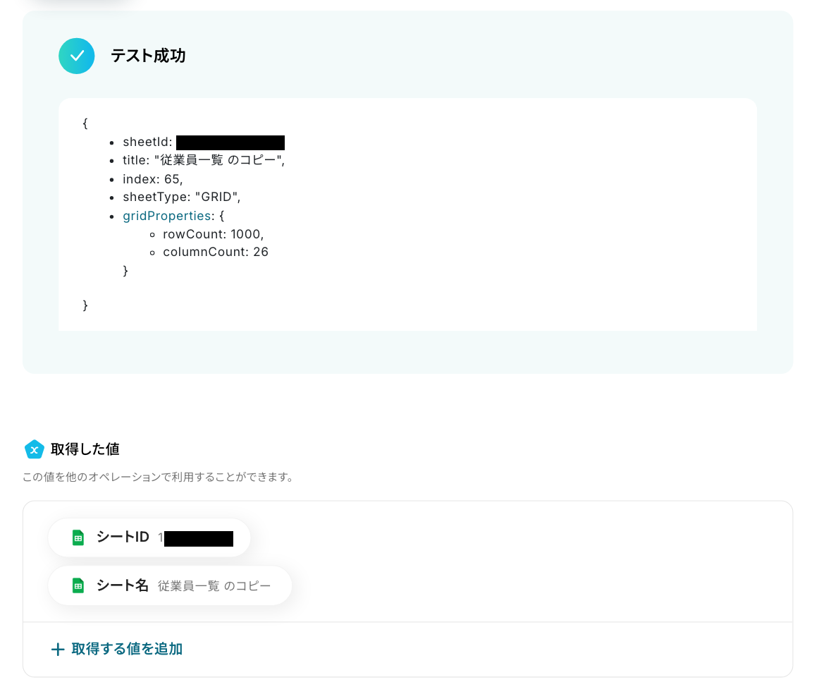 ※今回は、以下のシートをコピーしたいので、「シートID」の項目で該当のシート名(従業員一覧)を選択しました。