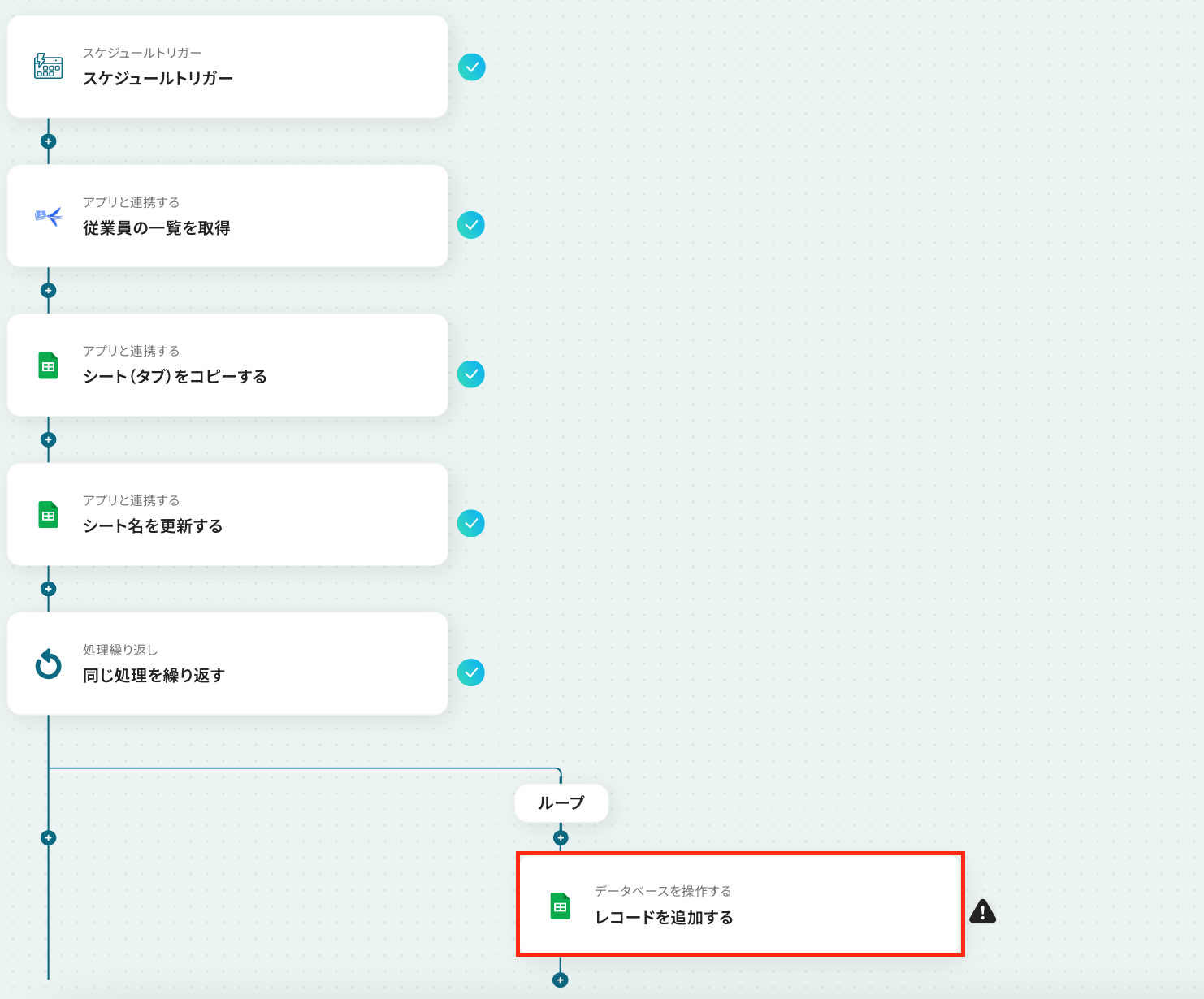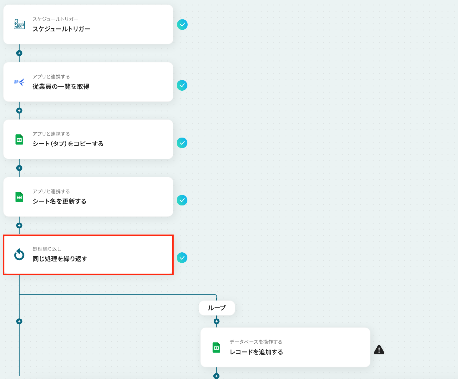 ※「同じ処理を繰り返す」オペレーション間の操作は、チームプラン・サクセスプランでのみご利用いただける機能となっております。