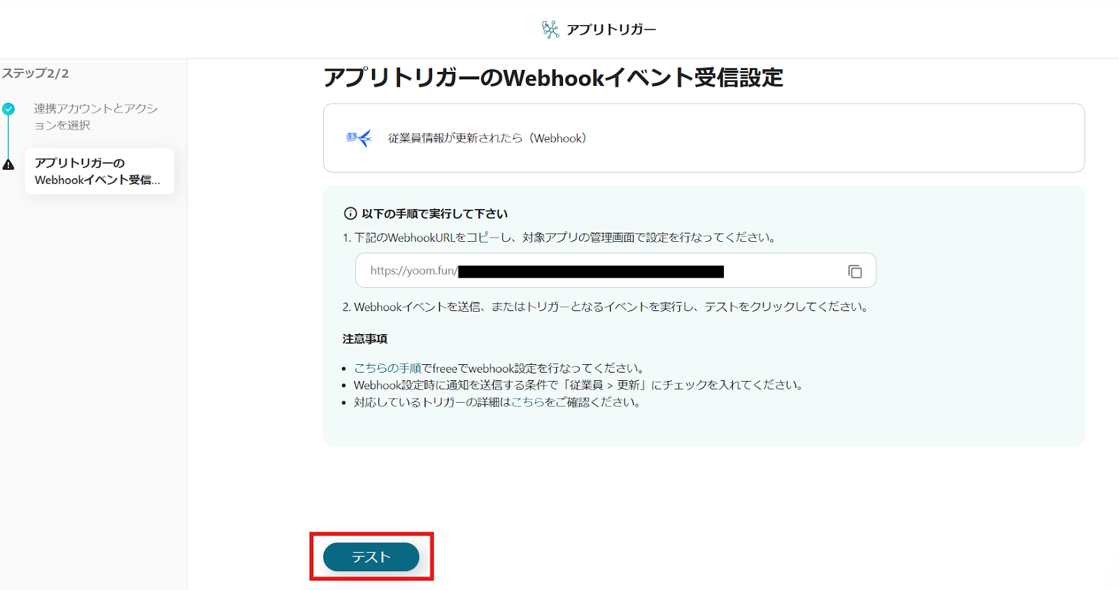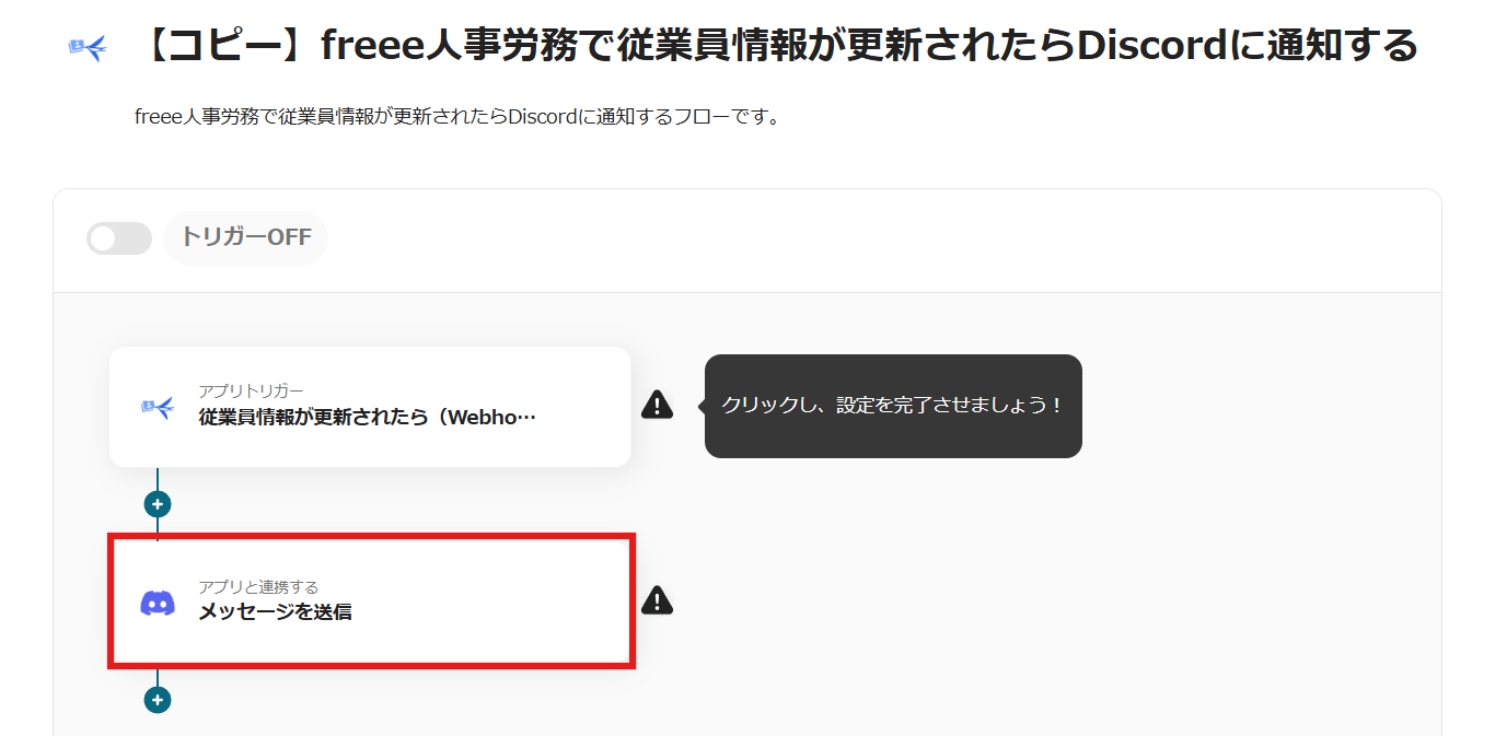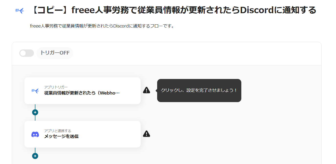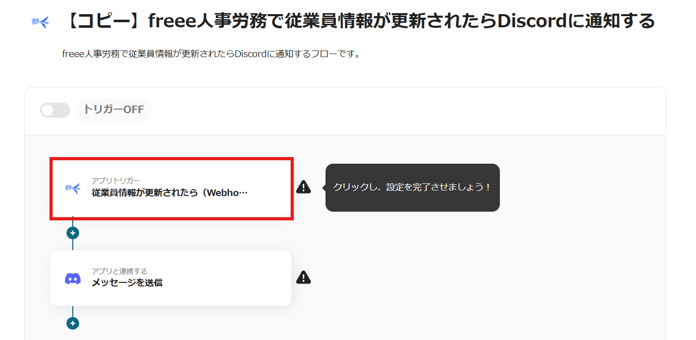 ・トリガーボタンをONにして、freee人事労務とDiscordの連携動作を確認