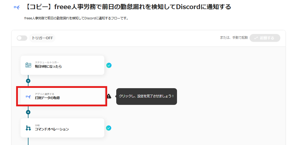 ・トリガーボタンをONにして、freee人事労務とDiscordの連携動作を確認する