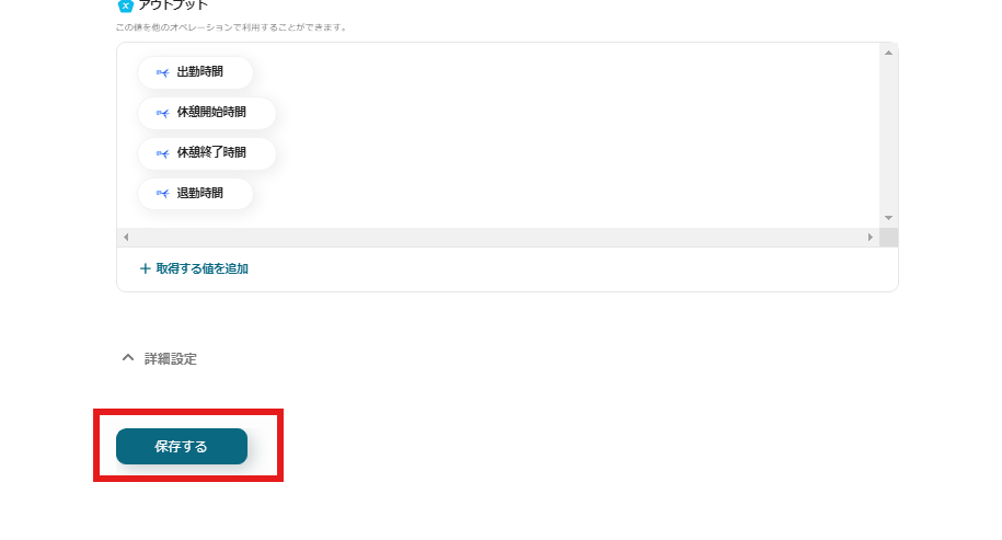 ・「取得する打刻日」はすでに入力されている内容で問題ないです。