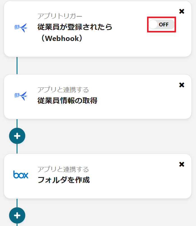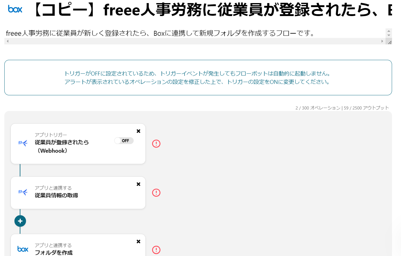 今回は以下の「freee人事労務に従業員が登録されたら、Boxに新規フォルダを作成する」テンプレートの設定をご紹介します。
