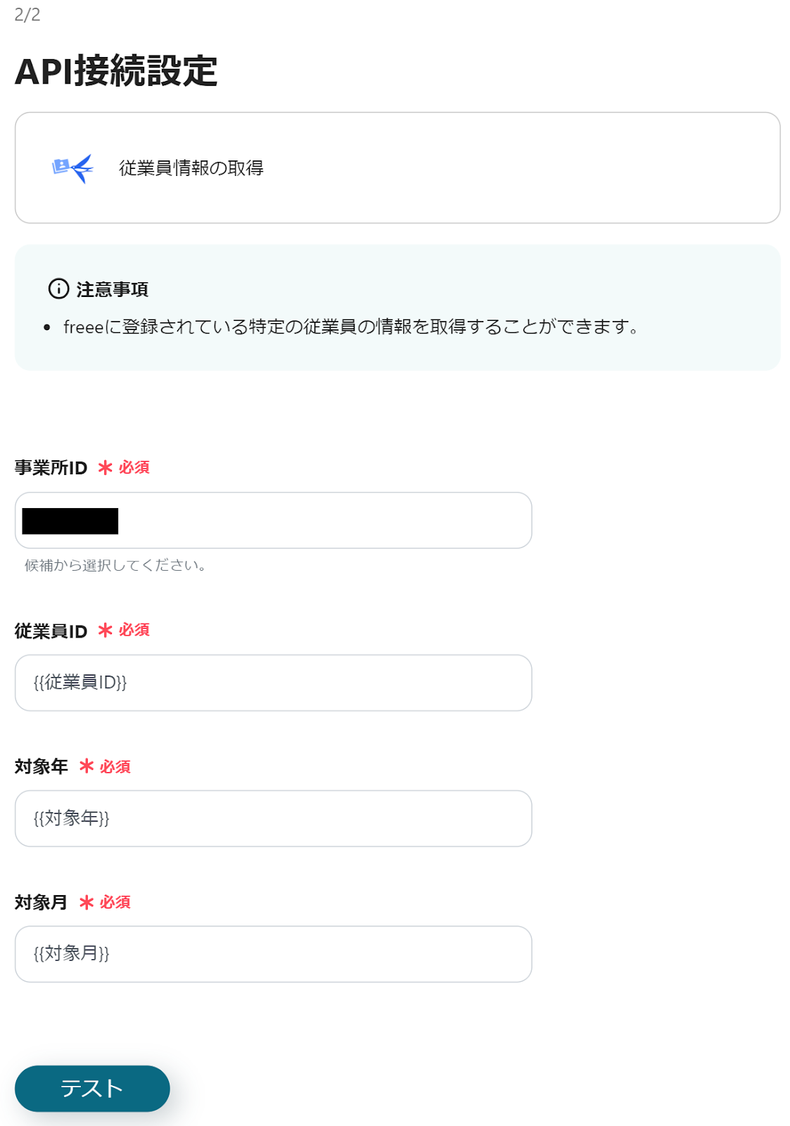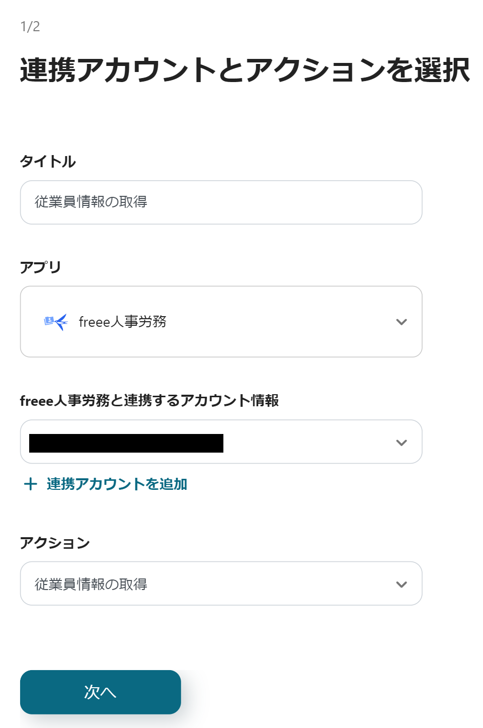 次にfreee人事労務で従業員情報を取得する設定を行うので、「従業員情報の取得」をクリックしましょう。